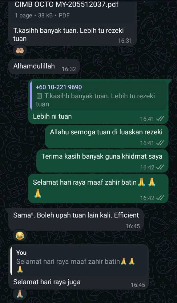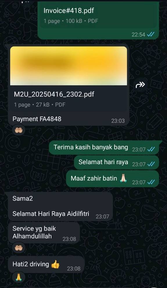 - Anak yang nak hantar barangan atau motor pulang ke kampung halaman