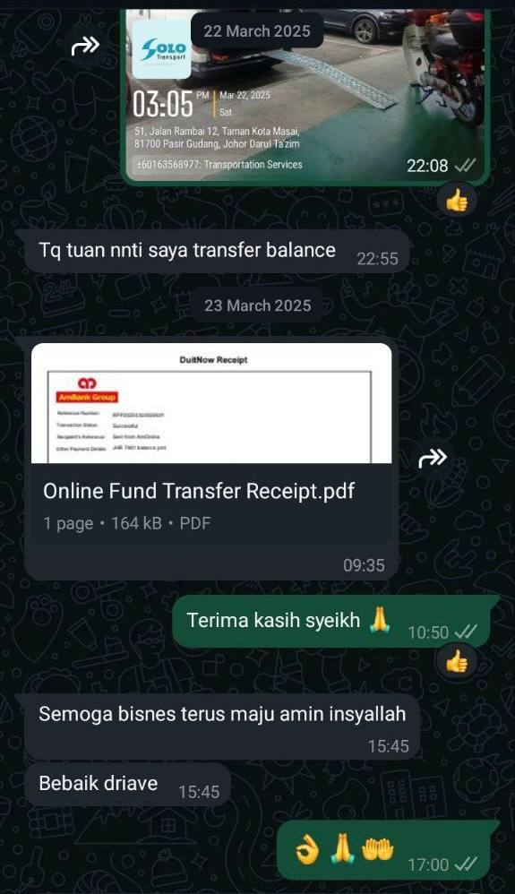 whatsapp atau hubungi kami utk sebut harga sebelum membuat tempahan transit motor atrau barangan